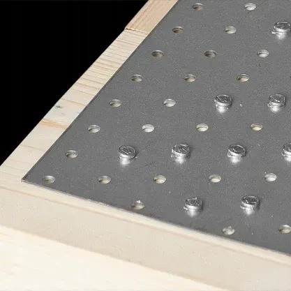 De geperforeerde plaat vindt brede toepassing in de houtbouw — van eenvoudige versterkingen tot complexe dakspantverbindingen. De montage wordt uitgevoerd met de volgende bevestigingsmiddelen: