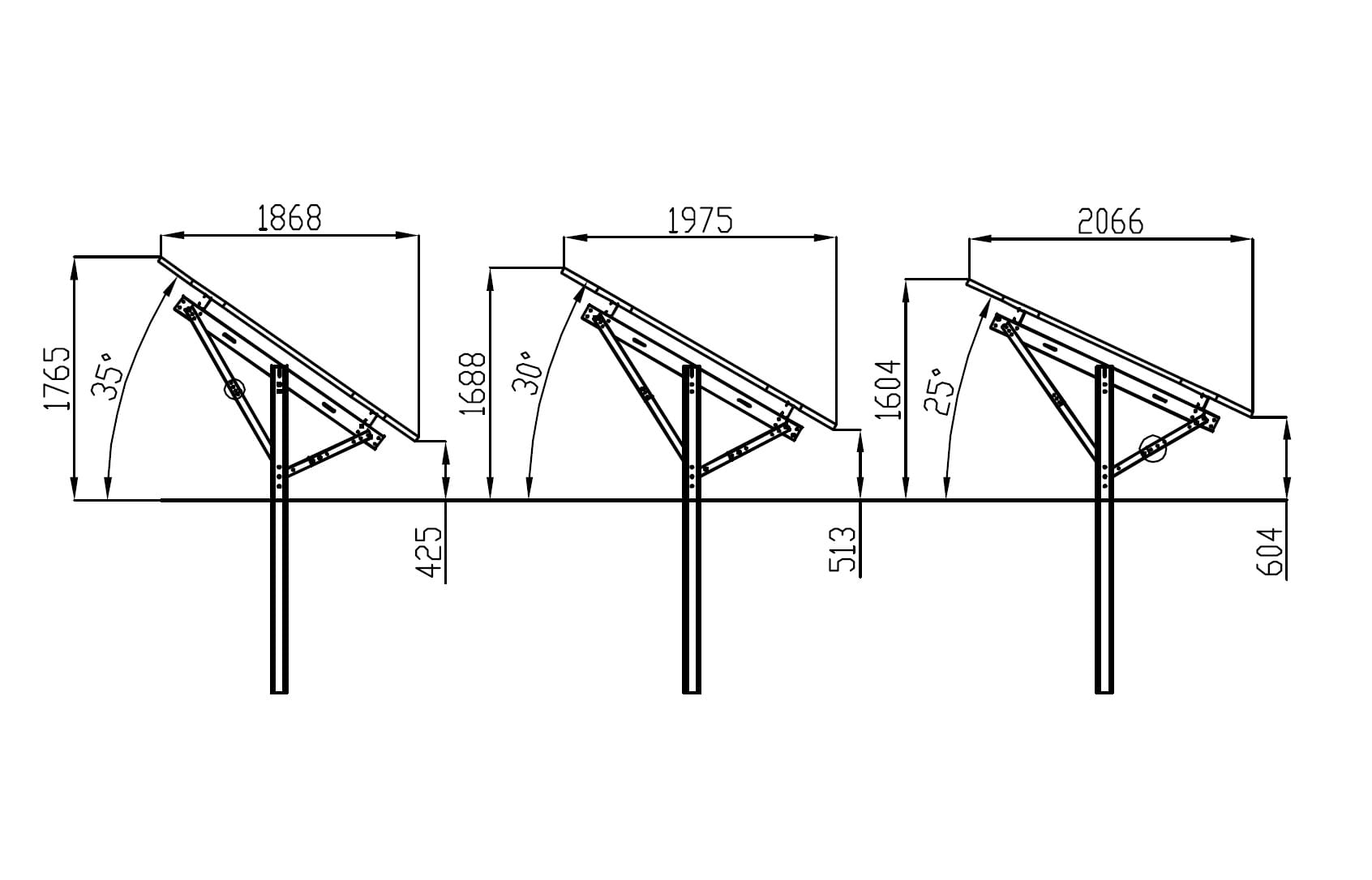- installatieflexibiliteit: Mogelijkheid om de optimale hellingshoek van de panelen te kiezen (25°, 30° of 35°) tijdens de installatie