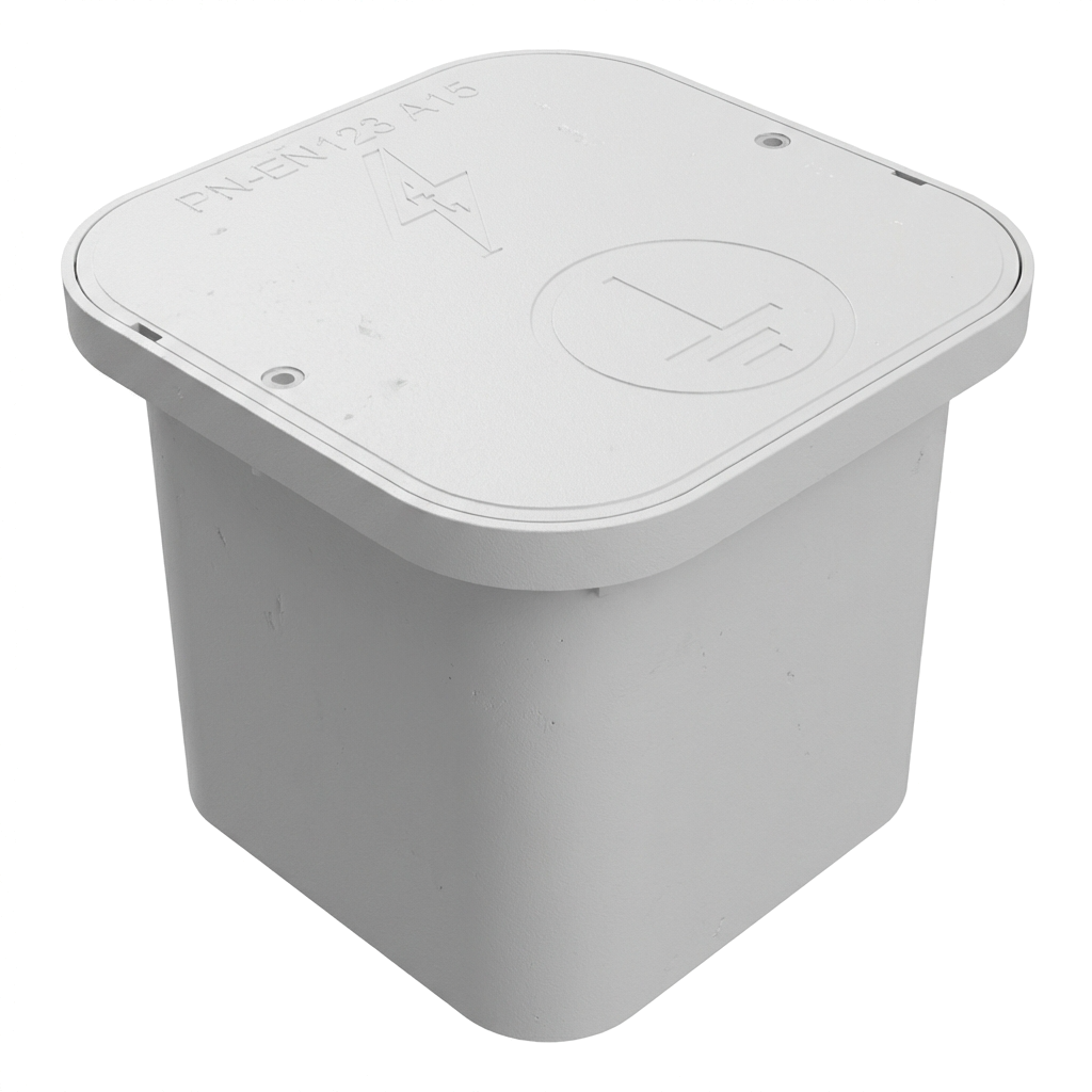 De doos is vervaardigd uit duurzaam kunststof in grijze kleur. Dankzij de solide constructie biedt hij effectieve bescherming van controleverbindingen tegen vocht, verontreinigingen en mechanische beschadigingen. Het deksel met markeringen maakt snelle identificatie van het controlepunt in het terrein mogelijk.