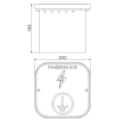 Grondcontroledoos van kunststof met afmetingen 200×200×165 mm, bestemd voor de montage van controleverbindingen en afvoergeleiders in de grond. De ideale oplossing overal waar de bliksemafleiderinstallatie gemakkelijke toegang vereist tot verbindingen die onder het terreinoppervlak verborgen zijn.