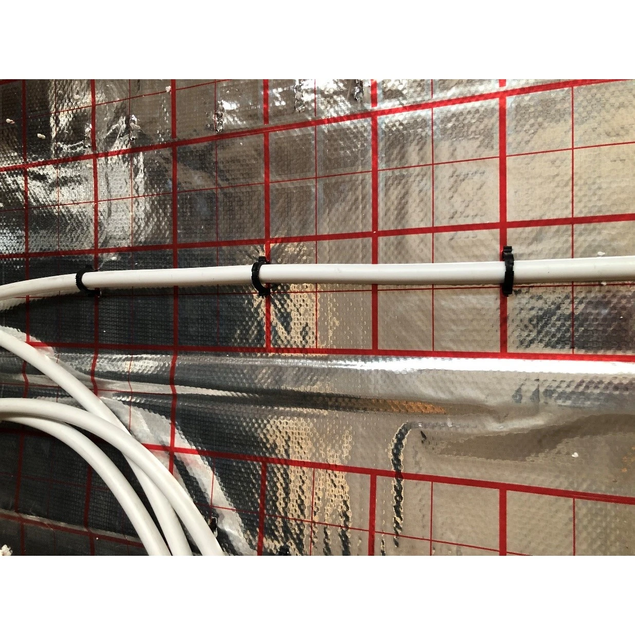 Bescherming van de isolatie en eenvoudige bevestiging van clips. De folie vormt een barrière die de piepschuimplaten beschermt tegen vocht en vervuiling tijdens het storten van de dekvloer. Ze vergemakkelijkt ook het werken met montage-clips en vermindert het risico op puntbelasting van de isolatie.