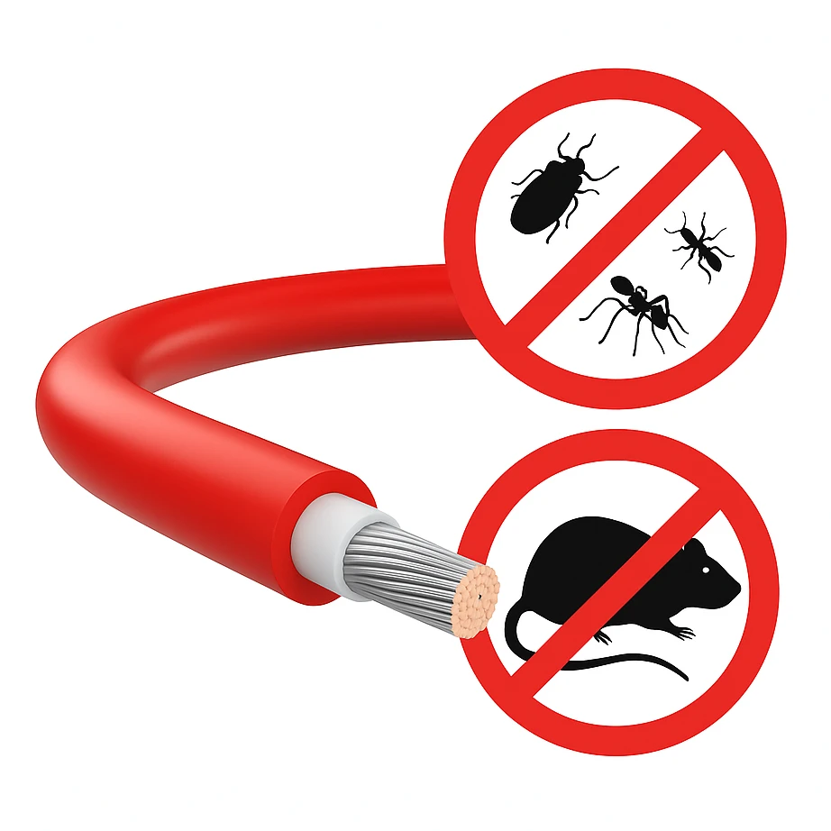 Waarom kiezen voor de AR-versie? Kabelschade door knaagdieren is een van de meest voorkomende oorzaken van prestatieverlies en kostbare garantieclaims bij PV-installaties. De kabel met AR-toevoeging elimineert dit probleem bij de bron — de actieve stof is permanent in de mantel verwerkt, waardoor de bescherming gedurende de volledige levensduur van minimaal 25 jaar actief blijft.