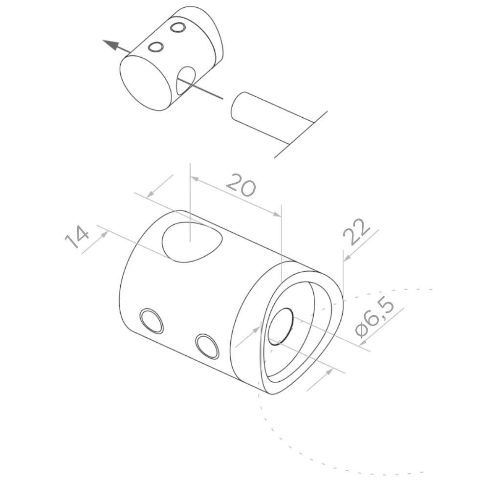 De doorvoerconstructie van de beugel maakt vrije doorvoer van staaf of dunne buis door het element mogelijk, wat de montage aanzienlijk versnelt en nauwkeurige plaatsing van balustravullingen vergemakkelijkt. De compacte afmetingen en lage eigengewicht zorgen ervoor dat de beugel de constructie visueel niet belast, terwijl het lichte, minimalistische karakter van de balustrade behouden blijft.