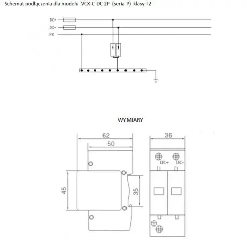 | Type et série | Parafoudre photovoltaïque DC classe C 2P 1000V Professional protection PV type 2 DC C2P 1000 VCX |