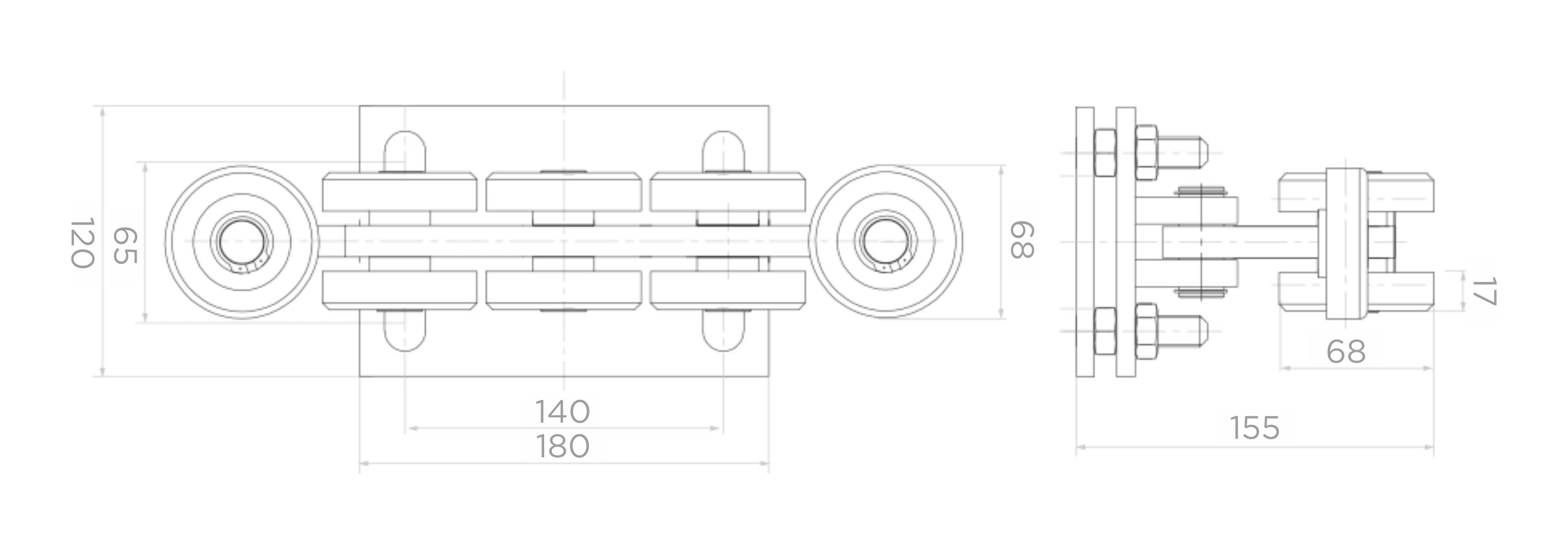 De rijwagen 80 is bestemd voor professionele systemen van zelfstandige en railgebonden schuifpoorten. De langwerpige sleuven in de montageplaat maken een nauwkeurige afstelling van de positie van de rijwagen mogelijk, wat de montagetijd verkort en de kalibratie van het rijspoor vereenvoudigt. Dankzij het gebruik van kunststof rollen worden metaalachtige geluiden tijdens de werking geëlimineerd — de poort beweegt stil en gelijkmatig, zonder trillingen die worden overgedragen op de omheiningconstructie.
