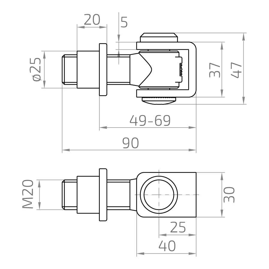 De afstelling gebeurt via de moer op de schroefdraad M20 — een eenvoudige draai met een sleutel volstaat om de vleugel verticaal bij te stellen, zonder de volledige constructie te moeten opvijzelen of optillen. Deze oplossing wordt bijzonder gewaardeerd door montageteams die werken met krappe tijdsvensters.