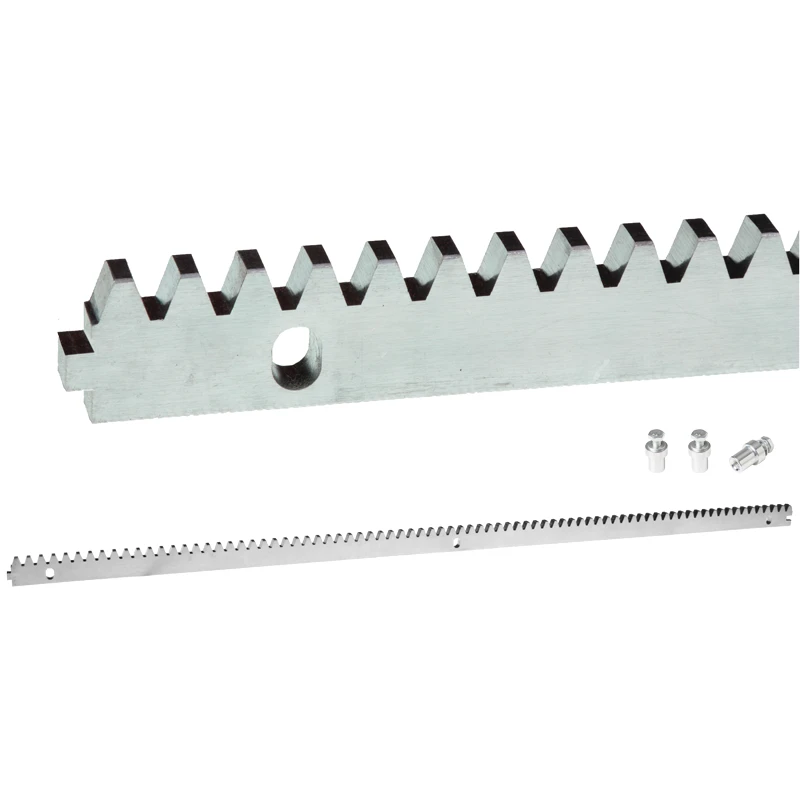 Stalen tandheugel met slot is een betrouwbaar aandrijfelement voor zelfdragende schuifpoorten. Dankzij de solide constructie met een dikte van 8 mm en een lengte van 1000 mm zorgt hij voor een soepele en stille werking van de poort gedurende jaren van gebruik.