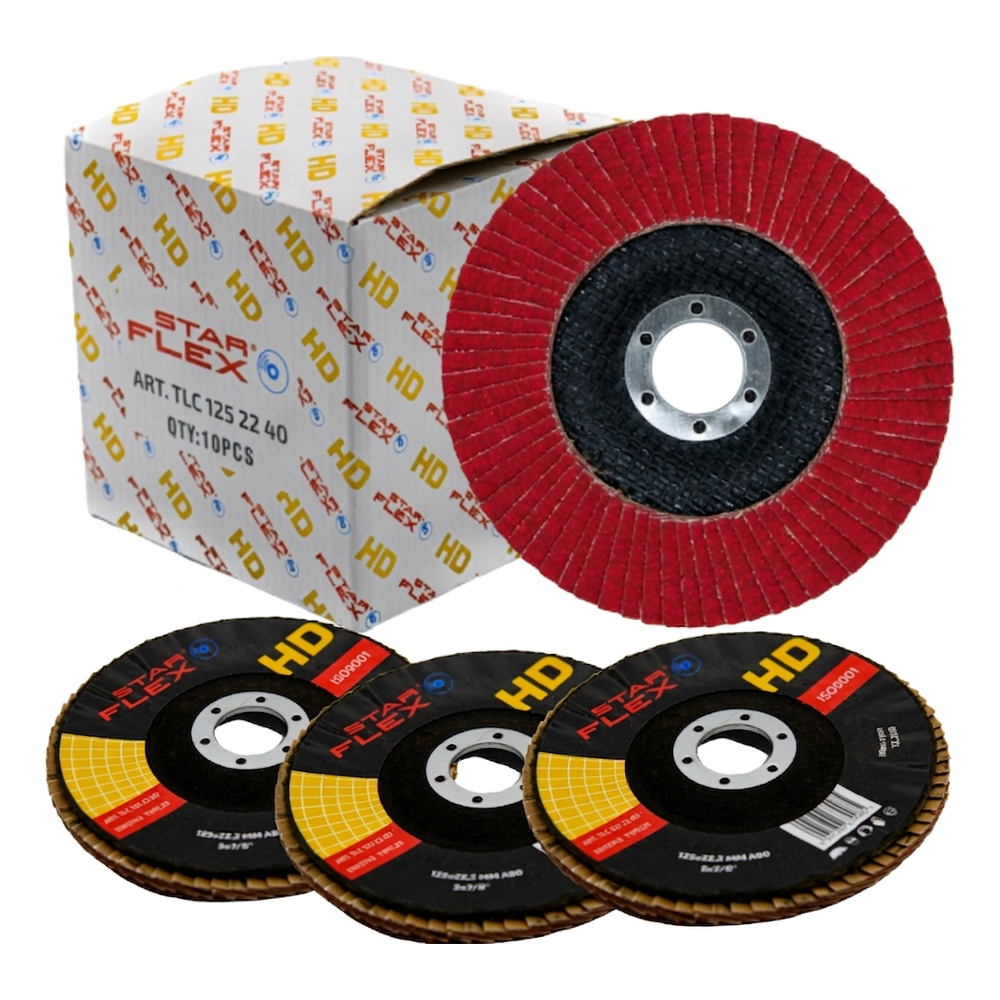 Starflex HD is een keramische lamellenschijf bestemd voor intensieve bewerking van roestvrij staal (INOX), koolstofstaal, chroom, titanium en andere moeilijk te bewerken metalen. Het zelfaanzettende keramische korrrel zorgt voor maximale materiaalafname in korte tijd, terwijl het zogenaamde koude slijpen gegarandeerd wordt — het te bewerken onderdeel wordt niet heet en verandert niet van kleur, zelfs bij langdurig werk.
