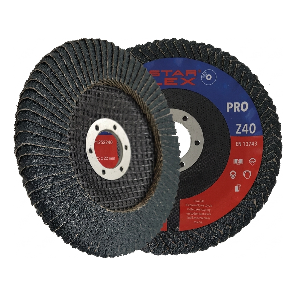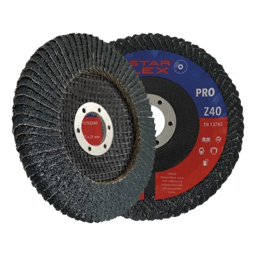 Starflex PRO Z40 is een professionele lamellenschijf speciaal ontworpen voor snelle en nauwkeurige slijping van hoeknaadlassen. Dankzij de conische constructie van type T27 past de schijf perfect in binnenhoeken en moeilijk bereikbare plaatsen, waardoor een glad oppervlakteafwerksel mogelijk is zonder het werkstuk te onderslijpen. Het product is bestemd voor gebruik op zowel zwart staal als roestvrijstaal (INOX) en andere metalen — één gereedschap voor meerdere materialen op de bouwplaats of in de werkplaats.