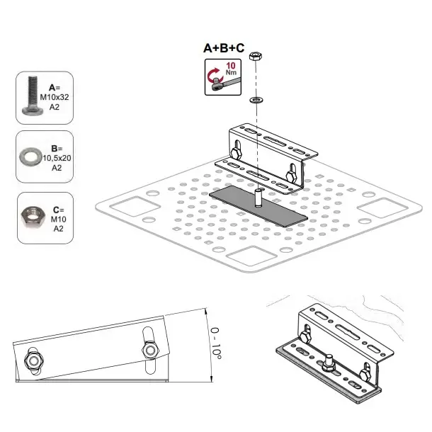 Support "Z" toit plat CWL 17x7x5cm - Acier inoxydable H17 1.4016 pour systèmes photovoltaïques.