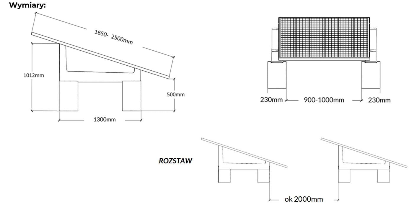 Montage sans intervention dans le sol – le système de lestage utilise la masse des blocs en béton comme charge stabilisatrice, éliminant la nécessité de réaliser des fondations ou des ancrages au sol. L'installation est ainsi plus rapide, moins coûteuse et entièrement réversible.