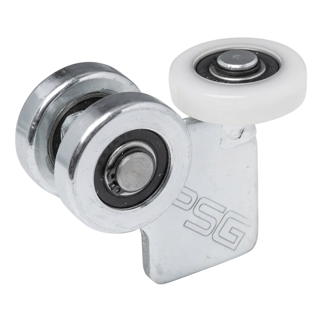 Alle metalen onderdelen van de loopwagen zijn vervaardigd uit elektrolytisch verzinkt staal, wat zorgt voor een effectieve bescherming tegen corrosie en de levensduur van het onderdeel aanzienlijk verlengt. De draagwielen zijn gemonteerd op kogellagers die de rolweerstand minimaliseren en een jarenlange, storingsvrije werking garanderen. Het derde wiel — het geleidingswiel — is vervaardigd uit kunststof en zorgt voor extra stabilisatie van de poort in de rail, terwijl het trillingen dempt en ongewenste geluiden tijdens het schuiven van het poortblad elimineert.